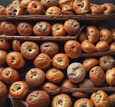 Maanantaisin leivon suussa sulavia englantilaisia suolaisia muffineita ja New Yorkin Bageleita